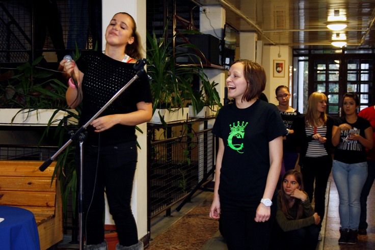 A Bárdos-napon a végzősök programjai – így Makszim Soma képén a 13. c karaokeversenye – hatalmas sikert arattak.