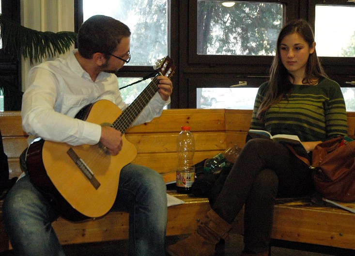 Másutt beállított kép, nálunk természetes valóság Kis Dávid „trubadúr” és Pohner Kata olvasó kettőse