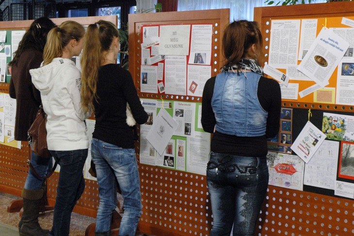 Az aulában járó-kelő tanulók tekintetét megragadta az a kiállítás, amelyet Dobrova Zita tanárnő helyezett el, pontosan azért, hogy kicsit megmutassa a diákok kreativitását. A kiállítás a végzősök magyar portfólióiból lett összeállítva, akiknek az volt a fő feladatuk, hogy valamilyen humoros módon foglalják össze a tananyagot, de az mégis maradjon érthető. A kiállítás neve is erre utal („Mi még olvasunk”), hiszen legfőképpen az eddigi kötelező olvasmányokat kellett feldolgozniuk ilyenolyan formában. Aki körbenézett a tárlaton, biztosan élvezte a legkülönfélébb irodalmi szereplők humoros történeteit. Már csak azért is érdemes megnézni a kiállítást, mert azt tanulóink készítették, és nagyon sokat dolgoztak vele.