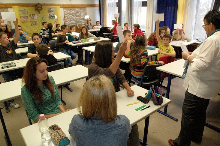 A nagygimnáziumi osztályokba kívánkozók az iskolaépülettel való ismerkedés után beszélgethettek a diákönkormányzat tagjaival, egy részletes tájékoztató meghallgatása után pedig kezdetüket vették az óralátogatások. Évről évre azt tapasztaljuk, hogy a nyelvi előkészítők miatt a nyelvórák a leglátogatottabbak.
