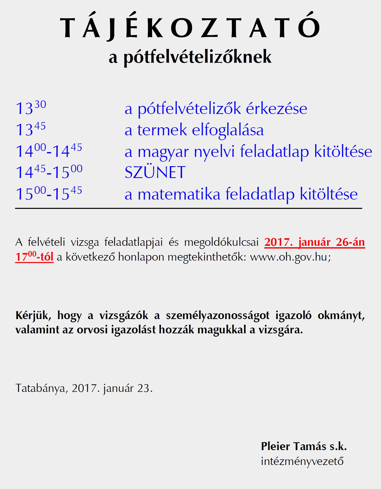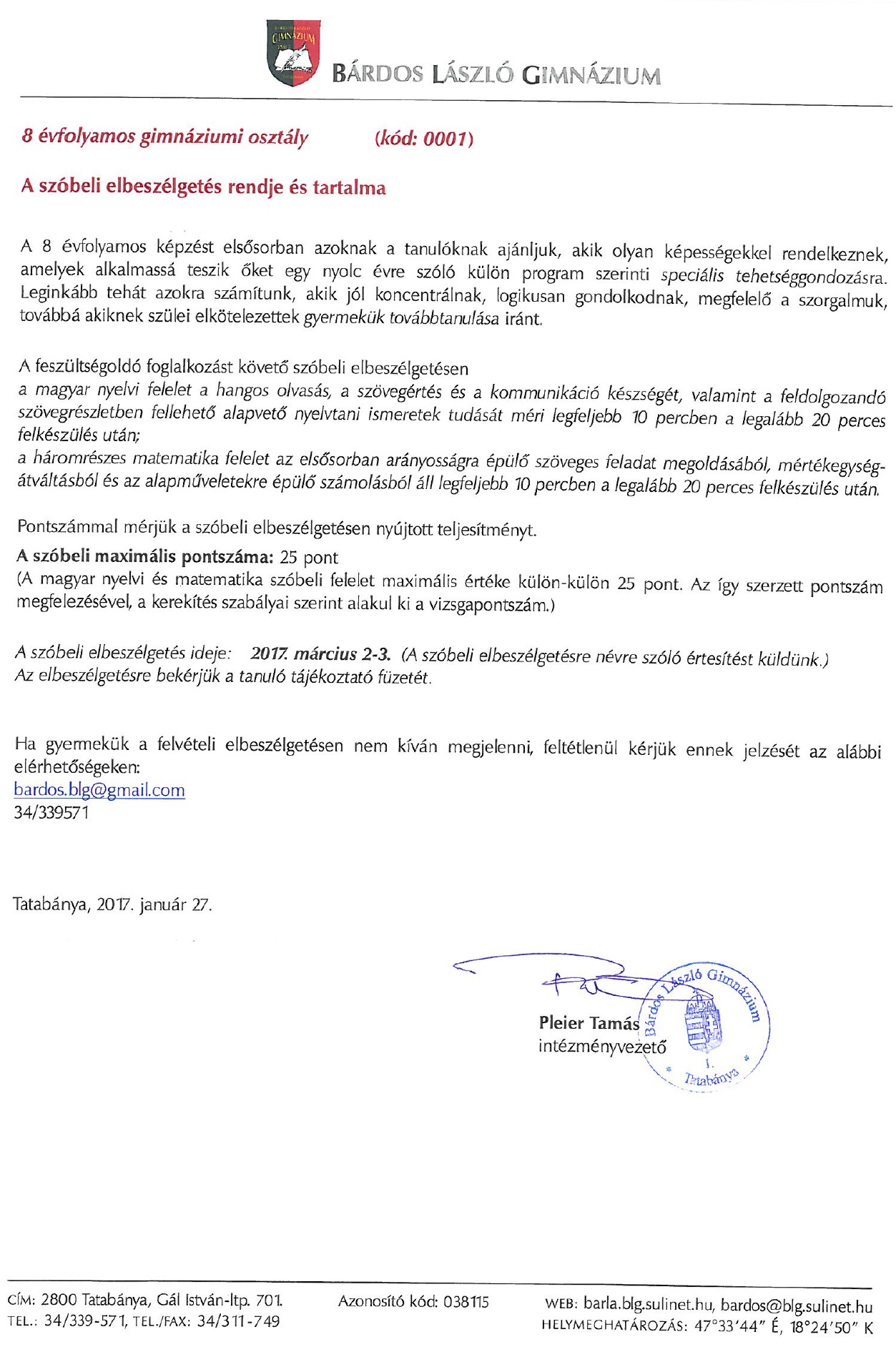 2017. január 13-án megrendezésre került az idei szalagavató. Idén 4 osztály, azaz az iskola 102 diákja kapta meg a szalagkitűzőt.
