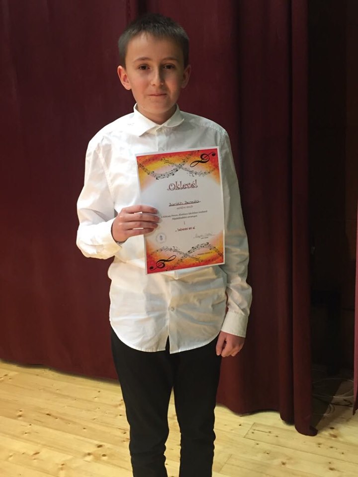Baráth Benedek 6. a osztályos tanuló a Kölcsey Ferenc Általános Iskola által meghirdetett városi népdaléneklési versenyen, a felső tagozatosok szólista kategóriáját megnyerte. Szívből gratulálunk az első helyhez neki és felkészítő tanárának Salló Győzőné tanárnőnek!