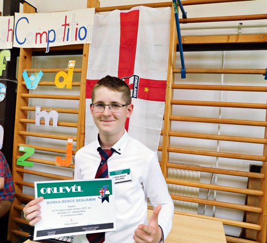 Borka Bence 8. a – országos angol nyelvi verseny 5. hely – Reiner Zsoltné