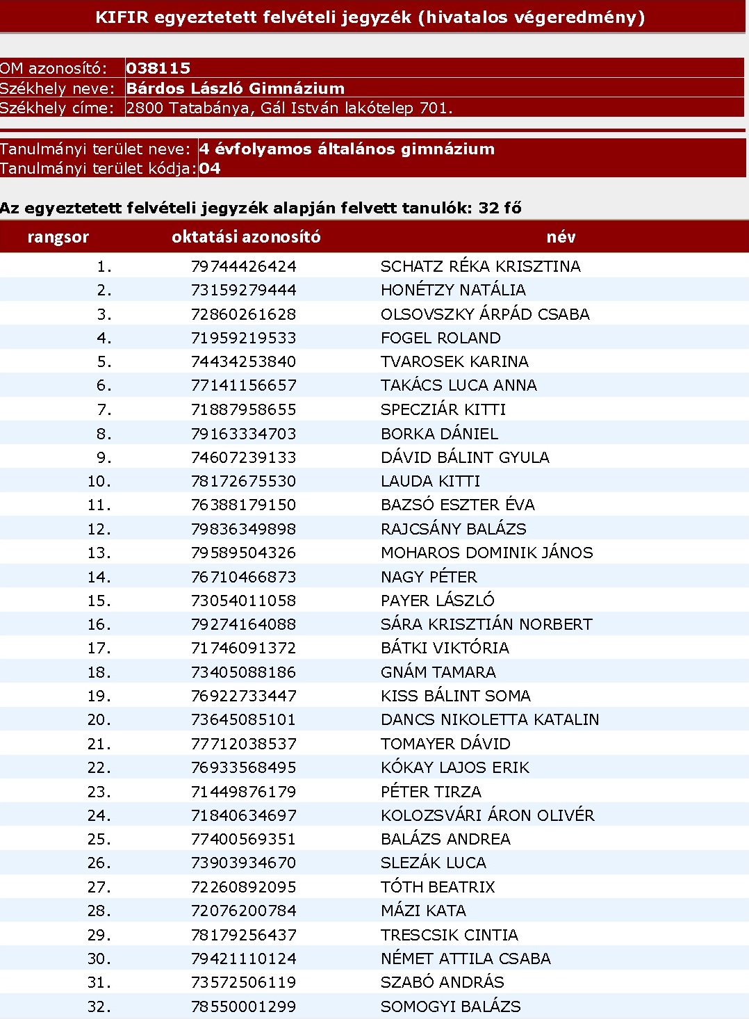 (04) 4 évfolyamos gimnázium (2014)
