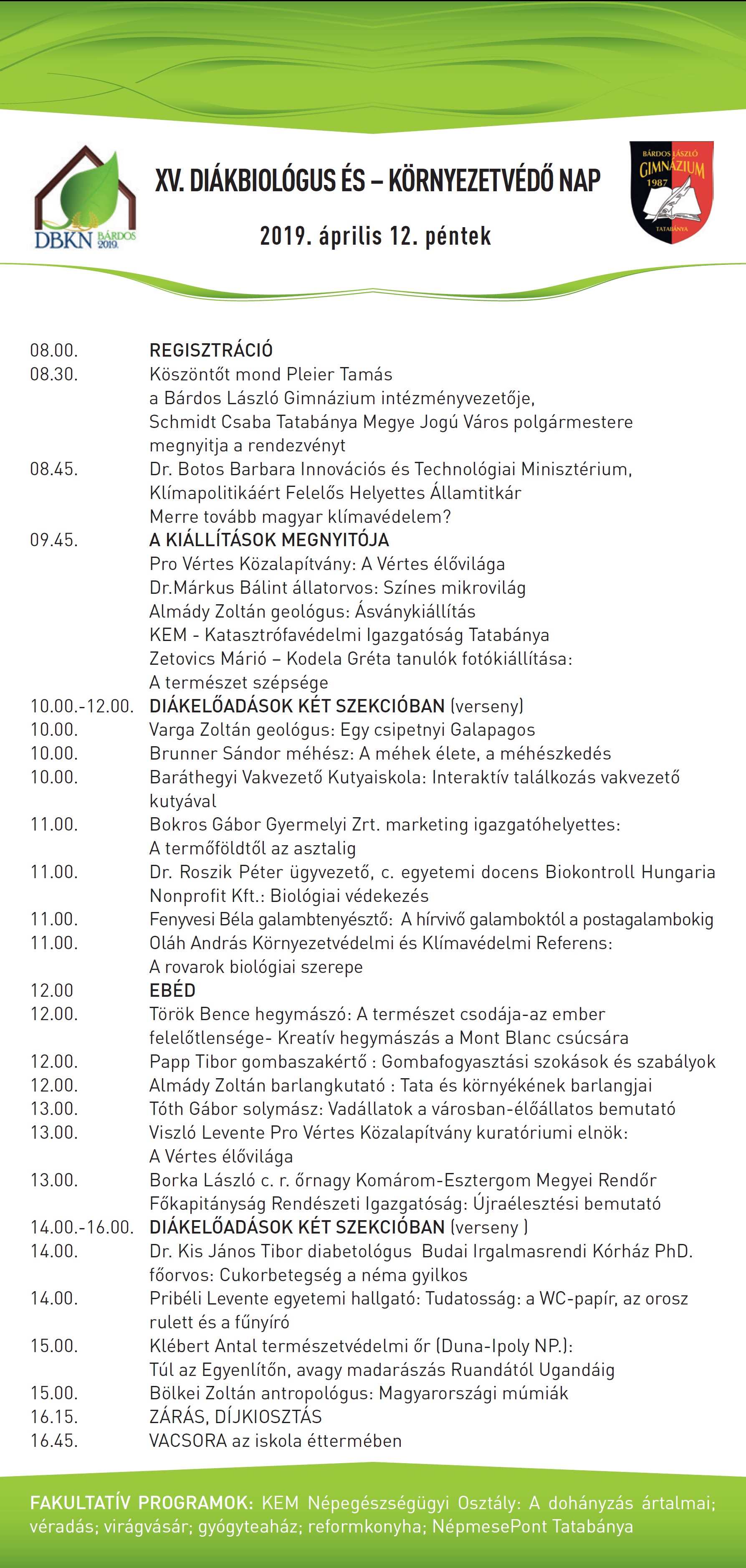 A XV. Diákbiológus és -környezetvédő Nap programja